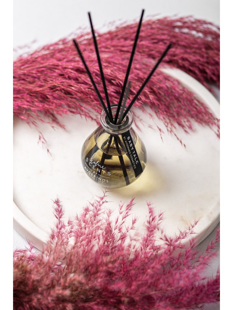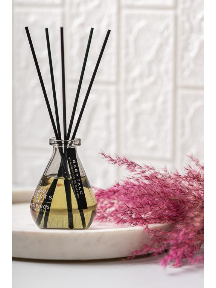 Δημιουργησαμε μια αξέχαστη αρωματική εμπειρία σε άρωμα BABY TALC που θα δημιουργήσει μια φιλόξενη ατμόσφαιρα και θα απογειώσει τις αισθήσεις σας. Το ρομαντικό άρωμα Baby talc με νότες απο ylang ylang, πορτοκάλι και βανίλια θα σας ταξιδέψουν σε ρομαντικές και τρυφερές αναμνήσεις... Διαλέξτε τις καλυτερες... Τα αρωματικά στικς μπορούν να χρησιμοποιηθούν σε όλους τους χώρους του σπιτιού και είναι ιδανικά για δώρο στους αγαπημένους σου ή για σένα. ΑΡΩΜΑΤΙΚΗ ΠΥΡΑΜΙΔΑ Νότες Κορυφής: Τριαντάφυλλο, Πορτοκάλι Νότες "Καρδιάς": Κρίνος, Μήλο Νότες Βάσης: Υλάνγκ-υλάνγκ, Βανίλια Μαδαγασκάρης Τα πολυτελή αρωματικά στικ της Avgerinos cosmetics διατίθενται σε μια μοναδική συσκευασία που περιέχει: 5 X Μαύρα Στίκς 1 X Baby talc Fragrance sticks μπουκάλι