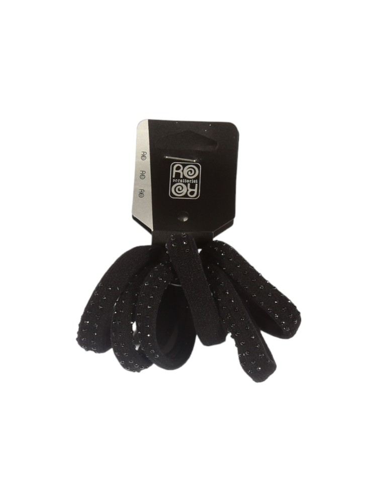 Ro-Ro Λάστιχο μαλλιών 3 cm σετ 6 τμχ Μαύρα Στρας (03-0011)
